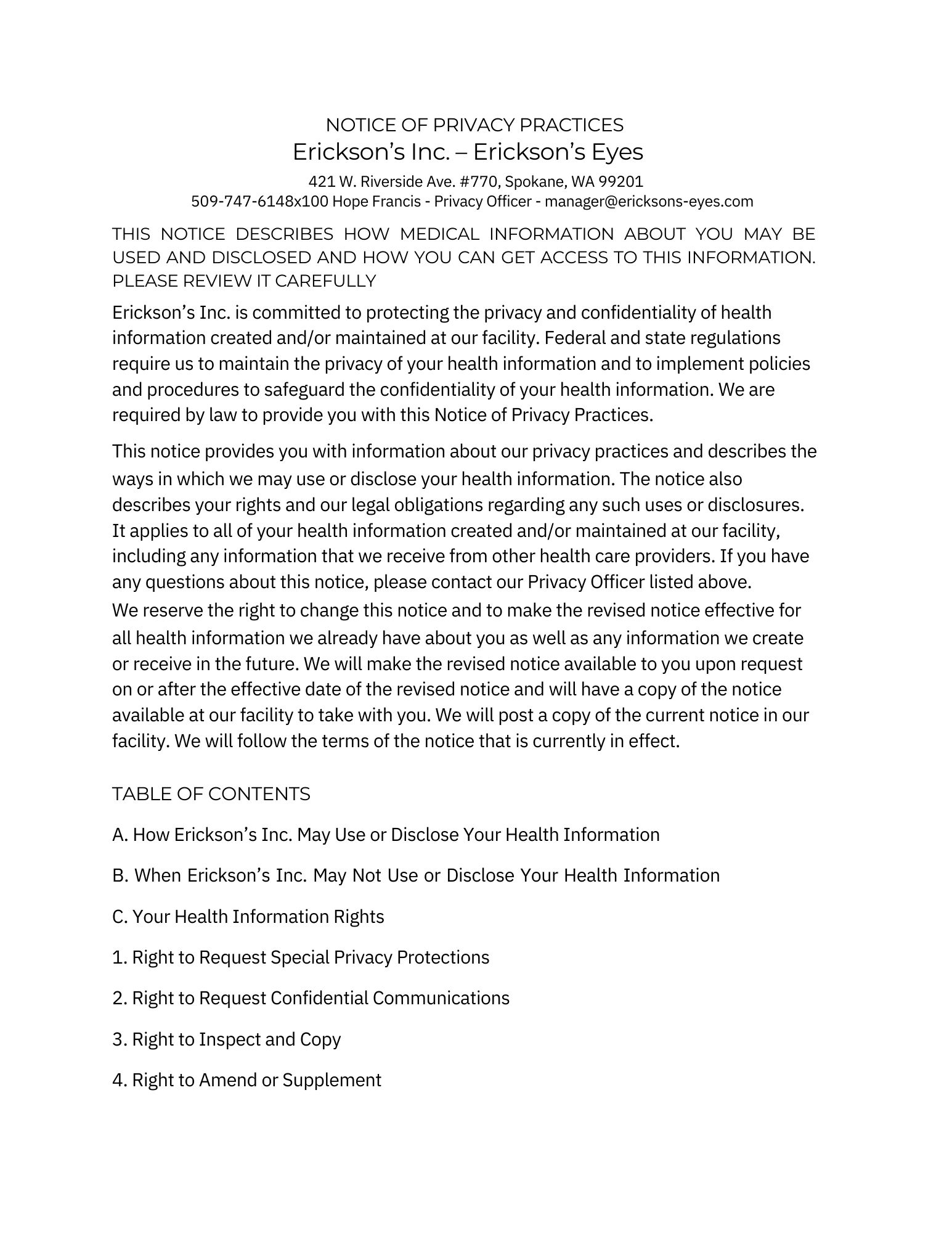 As a patient of Kim's I have come to enjoy he and his office staff immensely. They are helpful, courteous, quick to smile, and diligent about accommodating all patients needs as best they can. I wholeheartedly recommend Erickson's Eyes. You will walk away in awe.
